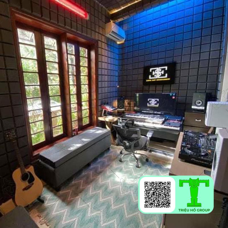 Môi trường lý tưởng để tối ưu hóa hiệu quả tiêu âm chính là phòng thu. Các vật liệu cách âm như mút tiêu âm có khả năng hạn chế tiếng ồn, giảm thiểu phản xạ âm thanh và ngăn chặn tiếng ồn từ bên ngoài xâm nhập vào không gian ghi hình. Việc lắp đặt các tấm tiêu âm trong phòng thu không chỉ giúp tạo ra một môi trường chuẩn xác để ghi âm mà còn đảm bảo các bản thu đạt chất lượng cao, rõ ràng, trung thực và có độ chi tiết tốt nhất.