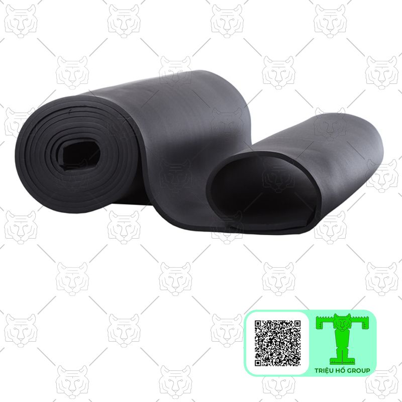 Cao su lưu hóa là một loại vật liệu cách nhiệt được chế tạo từ cao su tự nhiên hoặc cao su tổng hợp sau quá trình lưu hóa. Trong quá trình này, cao su trải qua phản ứng biến đổi từ cấu trúc mạch thẳng sang cấu trúc không gian ba chiều, giúp tạo ra sản phẩm có độ bền cao, tính đàn hồi tốt và khả năng chịu nhiệt vượt trội. Các tấm mút cao su có đặc điểm nổi bật là cấu trúc ô kín, mang màu đen đặc trưng, không thấm nước và có khả năng chống hóa chất hiệu quả. Nhờ những đặc tính này, cao su lưu hóa được sử dụng phổ biến trong nhiều lĩnh vực như xây dựng và công nghiệp, đặc biệt để bảo ôn cho các hệ thống đường ống nóng lạnh, hoặc làm vật liệu cách âm cho các không gian như rạp chiếu phim, phòng karaoke hay nhà hát. Trên thị trường, mút cao su đen thường có ba dạng chính gồm dạng cuộn, tấm và ống, với nhiều kích thước và độ dày khác nhau nhằm phục vụ đa dạng nhu cầu sử dụng.
